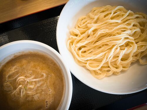 あきば麺食堂 濃厚魚介つけ麺 930円 気温が高かった。つけ麺にしよう。 あまりにも暑いのでどうもラーメンの気分ではなくなってつけ麺にする。つけ汁がかなりの熱さになっているので注意しなかた食べる。 写真で見るとかなりそっけない見た目。具材がつけ汁…