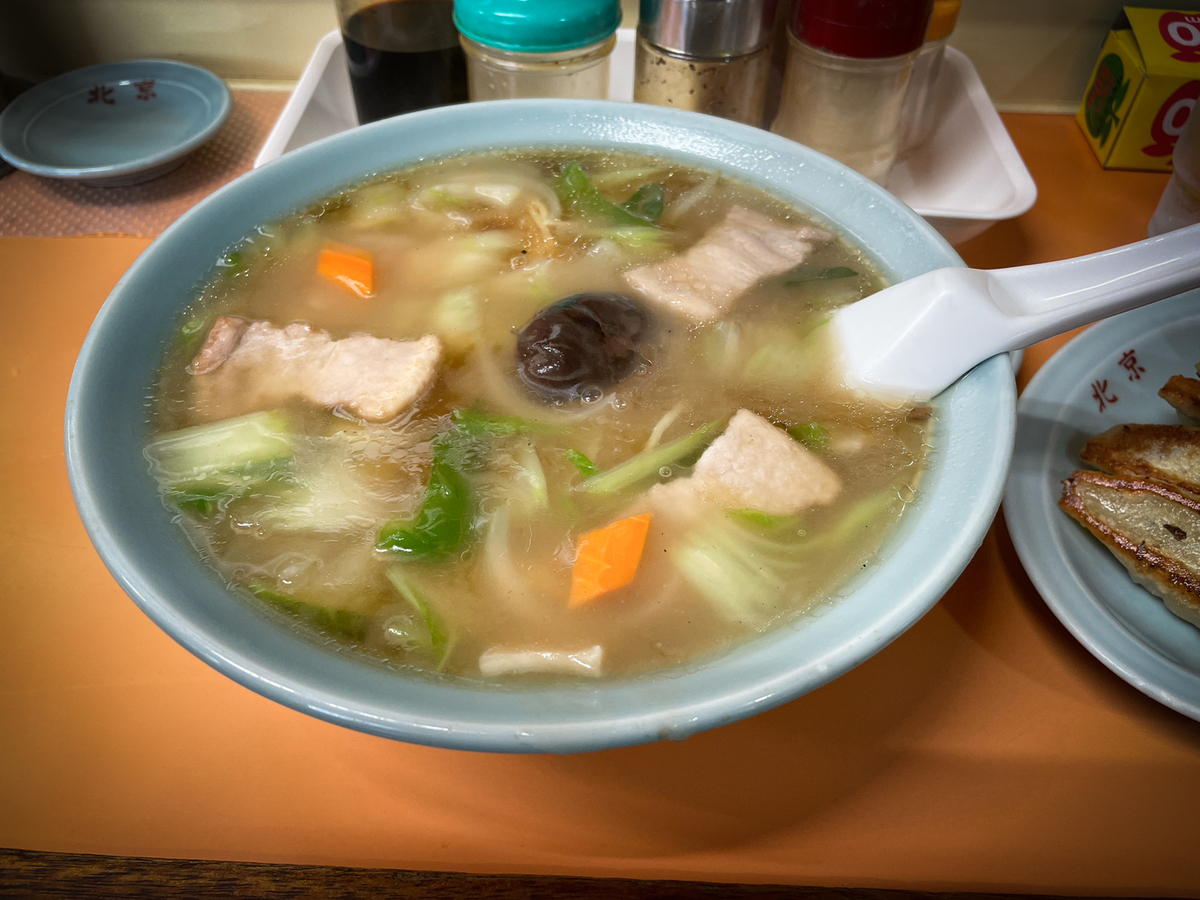 あんかけなので熱々で野菜たっぷり。麺は柔らかめの茹で加減でこれがスープとあんかけと抜群に合う。具材のひとつであるしいたけが最高。