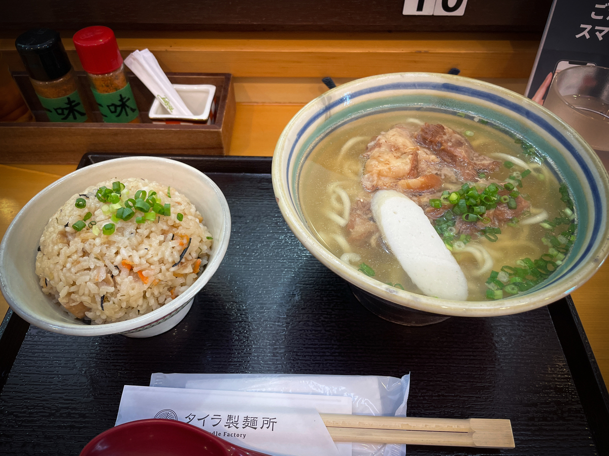 タイラ製麺所 ソーキそば並 800円 じゅーしー 300円